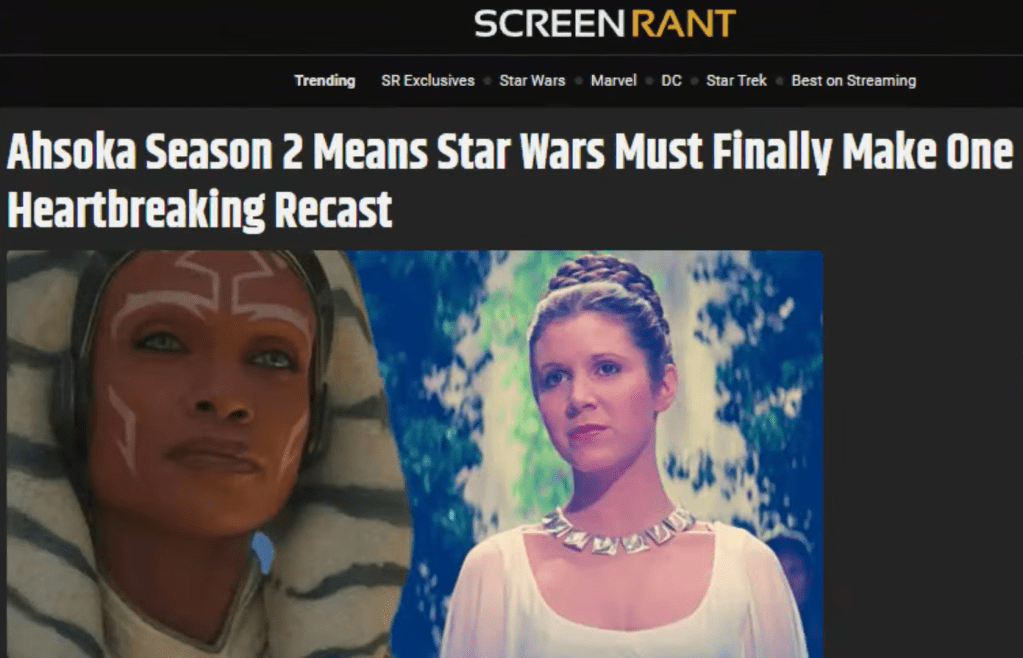 On this episode of “Why Weren’t You in Season One?” I tackle the latest from Screen Rant, who boldly declare that Ahsoka Season 2 “must finally make one heartbreaking recast.” And by heartbreaking, they mean recasting Princess Leia—again. But… didn’t that already happen?